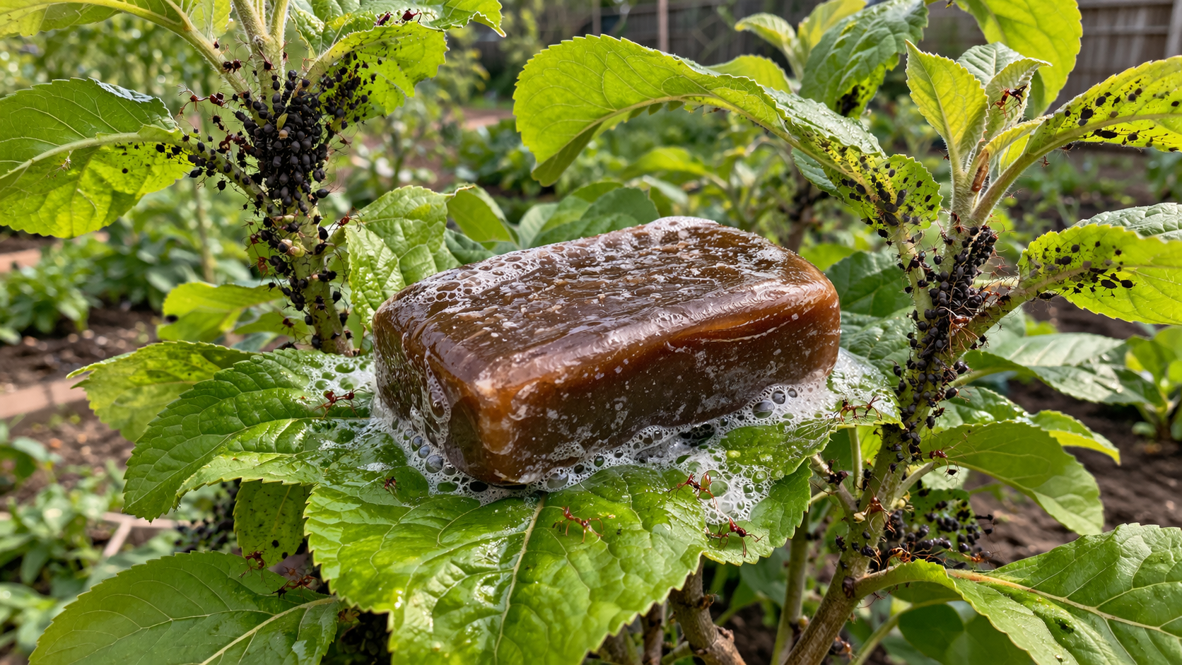Slepenā nianse: lai ziepju šķīdums ilgāk noturētos uz zariem un to neizskalotu spēcīga rīta rasa, tieši pirms smidzināšanas pievienojiet tam pāris ēdamkarotes izsijātu koksnes pelnu.