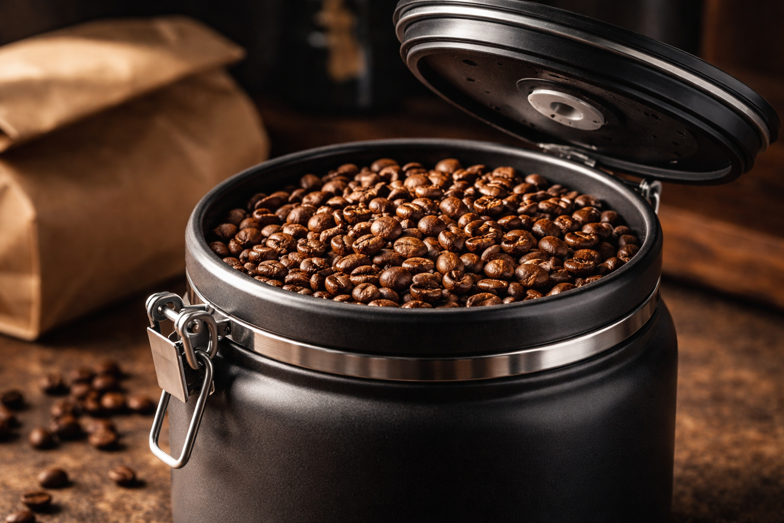 Apkaisīt svaigi grauzdēta kafija pilnībā noslēgtā traukā uzreiz pēc iegādes.