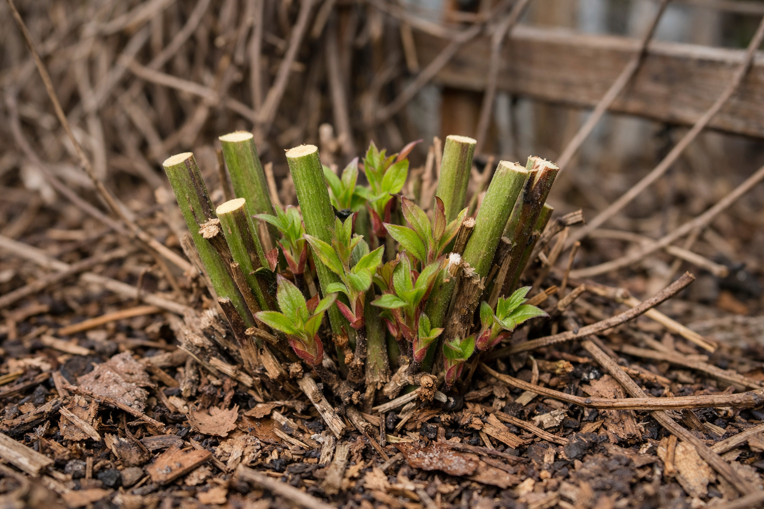Slepena nianse: vienmēr veiciet griezumu apmēram puscentimetru virs vesela pumpura un vienmēr slīpā leņķī, lai pavasara mitrums viegli aizripotu un neizraisītu stublāja puvi.