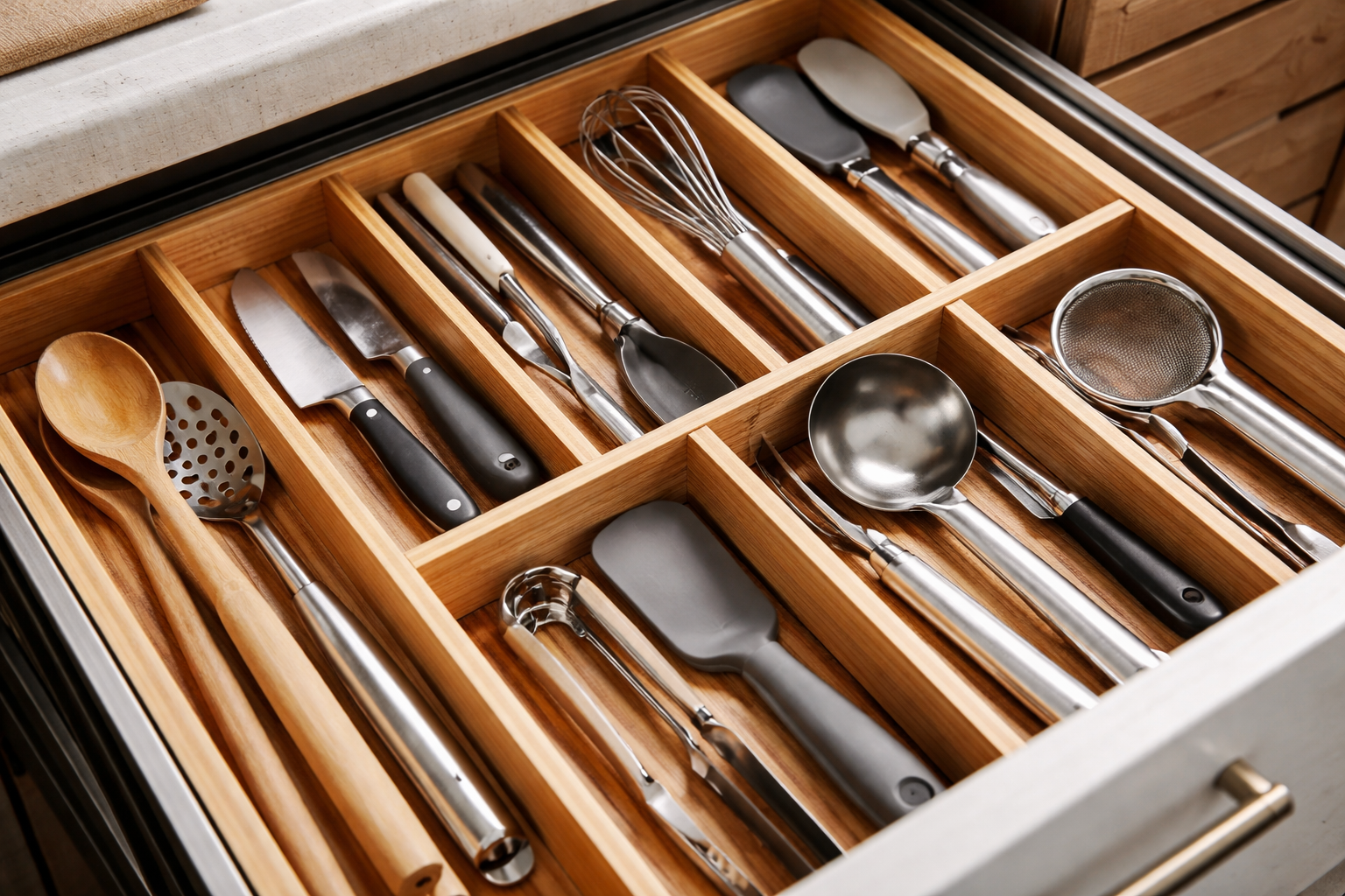 Kausu, slotiņu un nažu kaudze atvilktnē ir ļoti kaitinoša un liek tērēt vērtīgo laiku ēdiena gatavošanai. Es jau daudzus gadus organizēju telpu virtuvē un zinu, kā ātri atrisināt šo problēmu: tagad es padalīšos ar pārbaudītiem risinājumiem, kas palīdzēs jums izveidot perfektu kārtību uz visiem laikiem.
