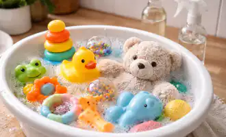 Piepildiet šādus priekšmetus izlietnē ar siltu ūdeni un šļakatām mazgāšanas līdzekļa ātrai rīta skalošanai.