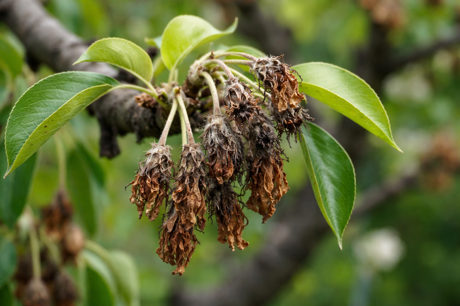 Galvenais augļu trūkuma iemesls pavasarī ir augļu pumpuru bojājumi to veidošanās stadijā vai pamošanās brīdī. Slimības noplicina bumbieru koka resursus, liekot tam izdalīt olnīcas, lai izdzīvotu.