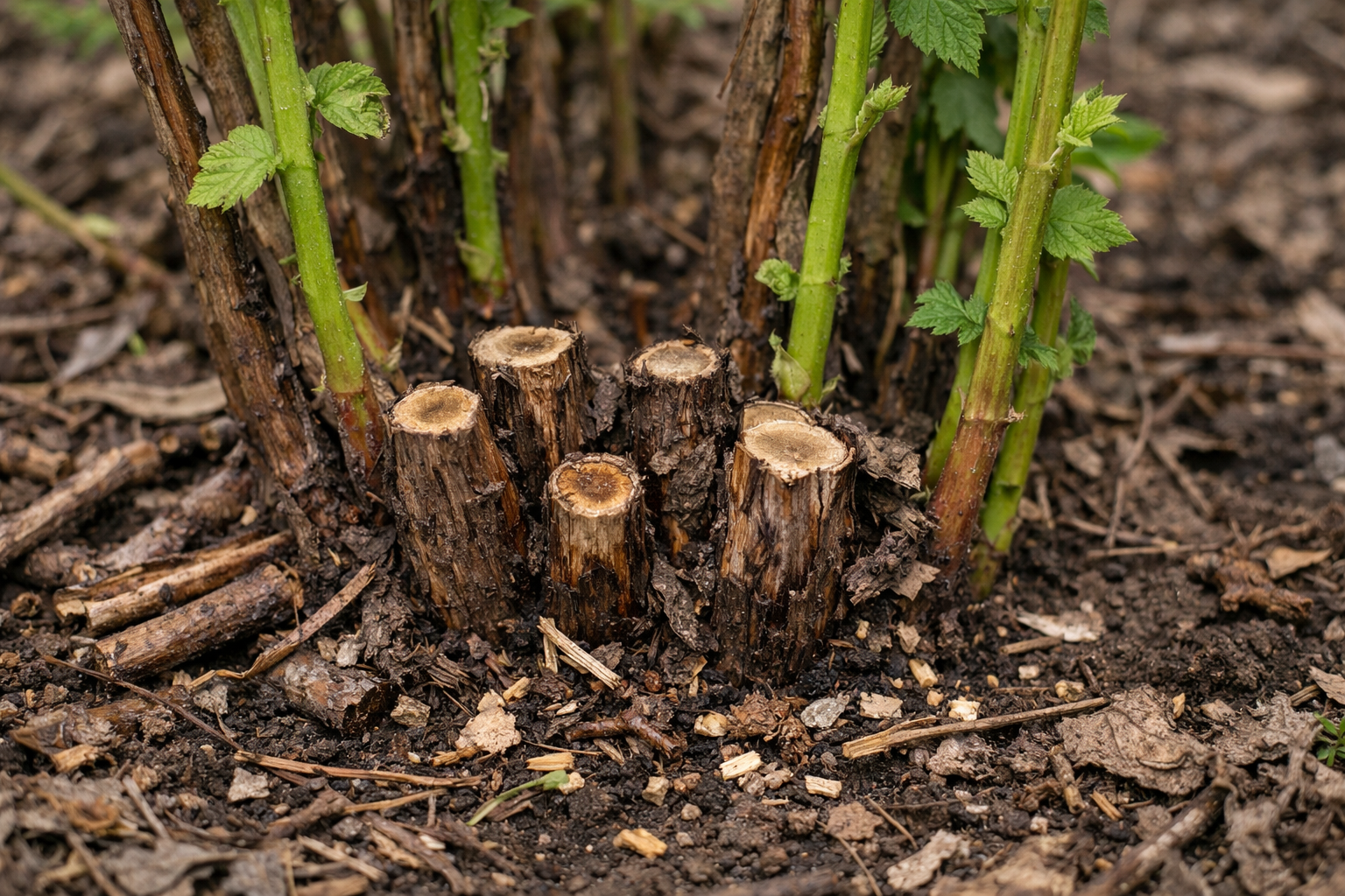 Nē, dzinumi ir jānogriež stingri vienā līmenī ar zemi, lai novērstu ērtu bīstamo kaitēkļu ziemošanu.