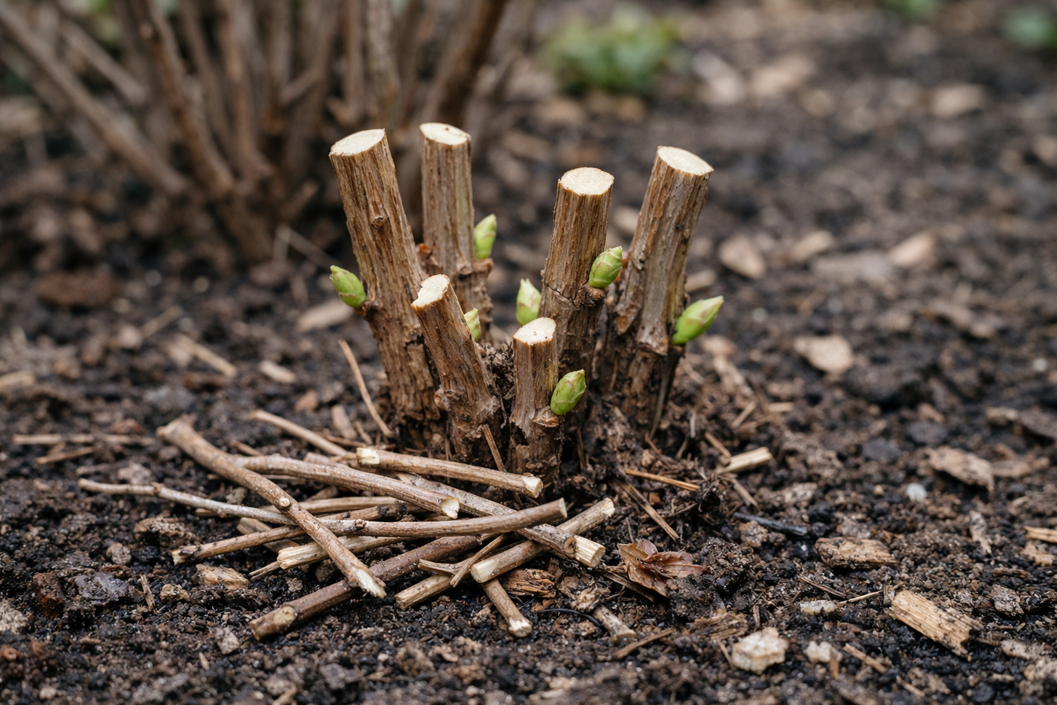 Procedūra jāsāk agrā pavasarī, kad sniegs jau nokusis, bet aktīva sulas plūsma vēl nav sākusies. Ja kavēsi un nogriezīsi zarus, kamēr pumpuri uzbriest, krūms ilgi “raudīs” sulas un zaudēs daudz spēka.