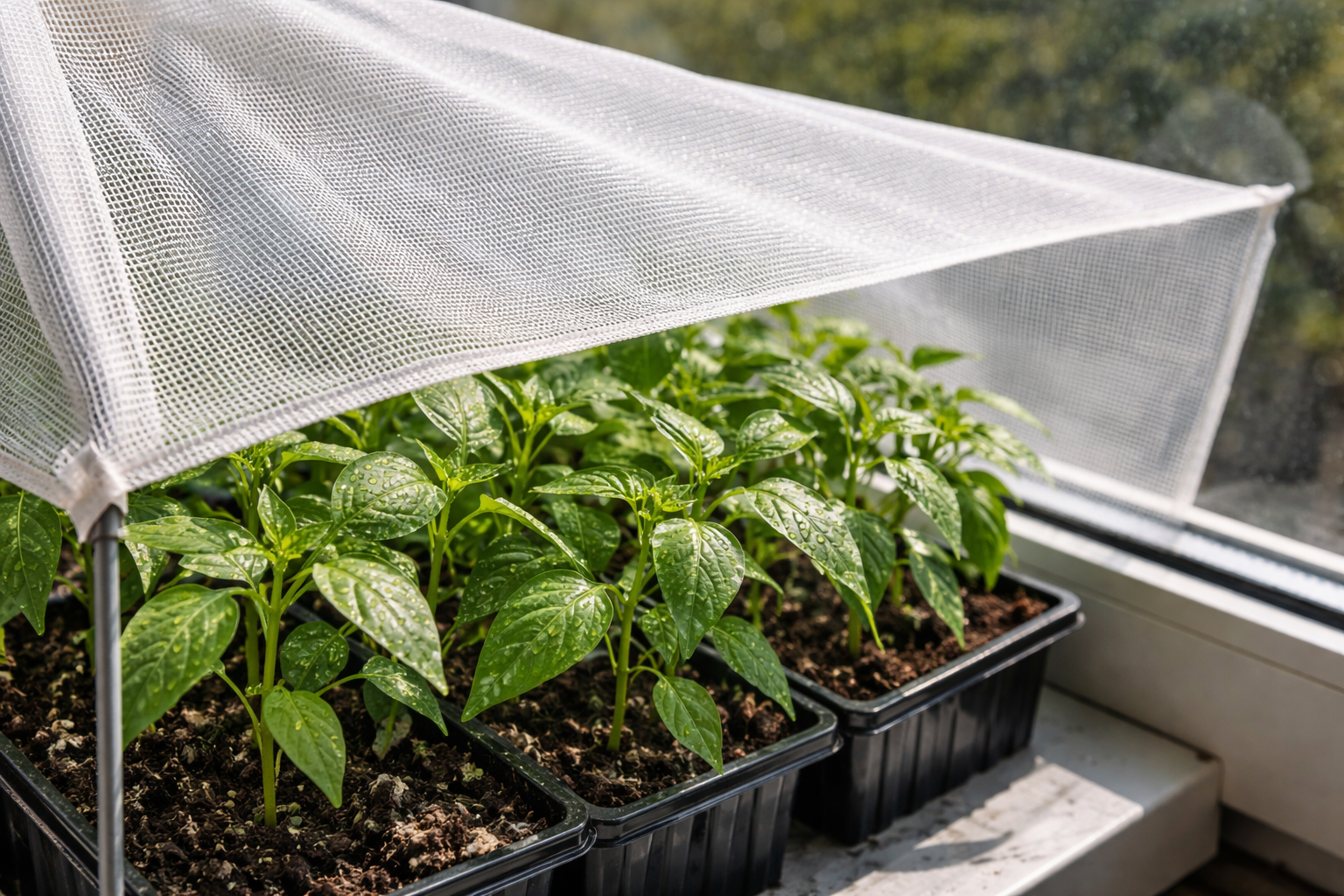Pareiza apgaismojuma regulēšana uz palodzes garantē turpmāko stādījumu veselību. Aizsargsieti palīdz stādiem attīstīt spēcīgas sakņu sistēmas bez stresa no pārkaršanas.