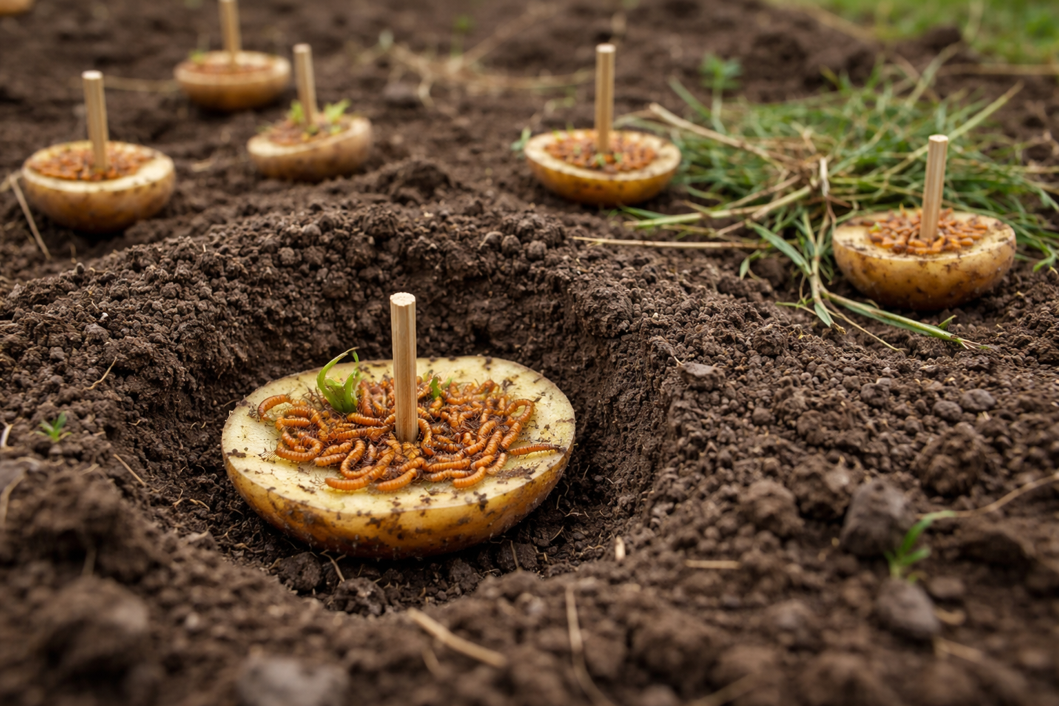 Uz redzēšanos augsne tukšs un nesatur jaunas saknes, šis kaitēklis izsalcis un aktīvi meklē pārtiku. Mēs varam izmantot šo faktu pret to, piedāvājot garšīgu alternatīvu nākotnes kultūrām.