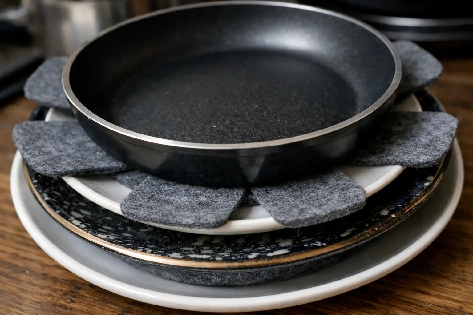 Pareiza telpas organizēšana un rūpīga virtuves iekārtu kopšana ievērojami pagarina tā nevainojamo kalpošanas laiku. Izmantojot pareizo trauku aizsargi starp katru gabalu jūs garantējat gludas virsmas un aizsargāsiet jutīgo keramiku no plaisāšanas. Jūsu gatavošanas arsenāls saglabāsies ideālā stāvoklī pat intensīvi lietojot ikdienā.