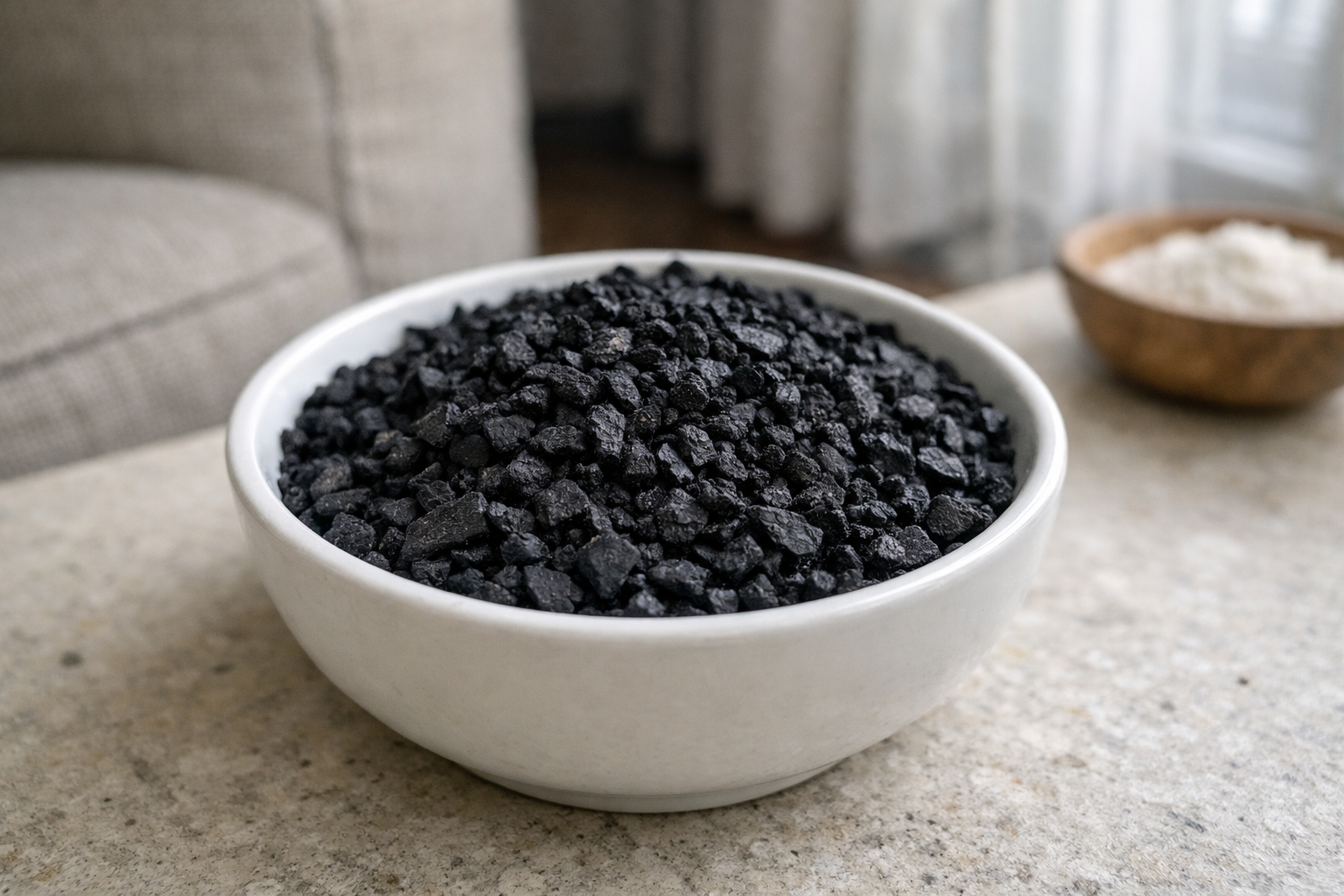 Stūros novietojiet nelielas bļodiņas ar sasmalcinātu aktivēto ogli.