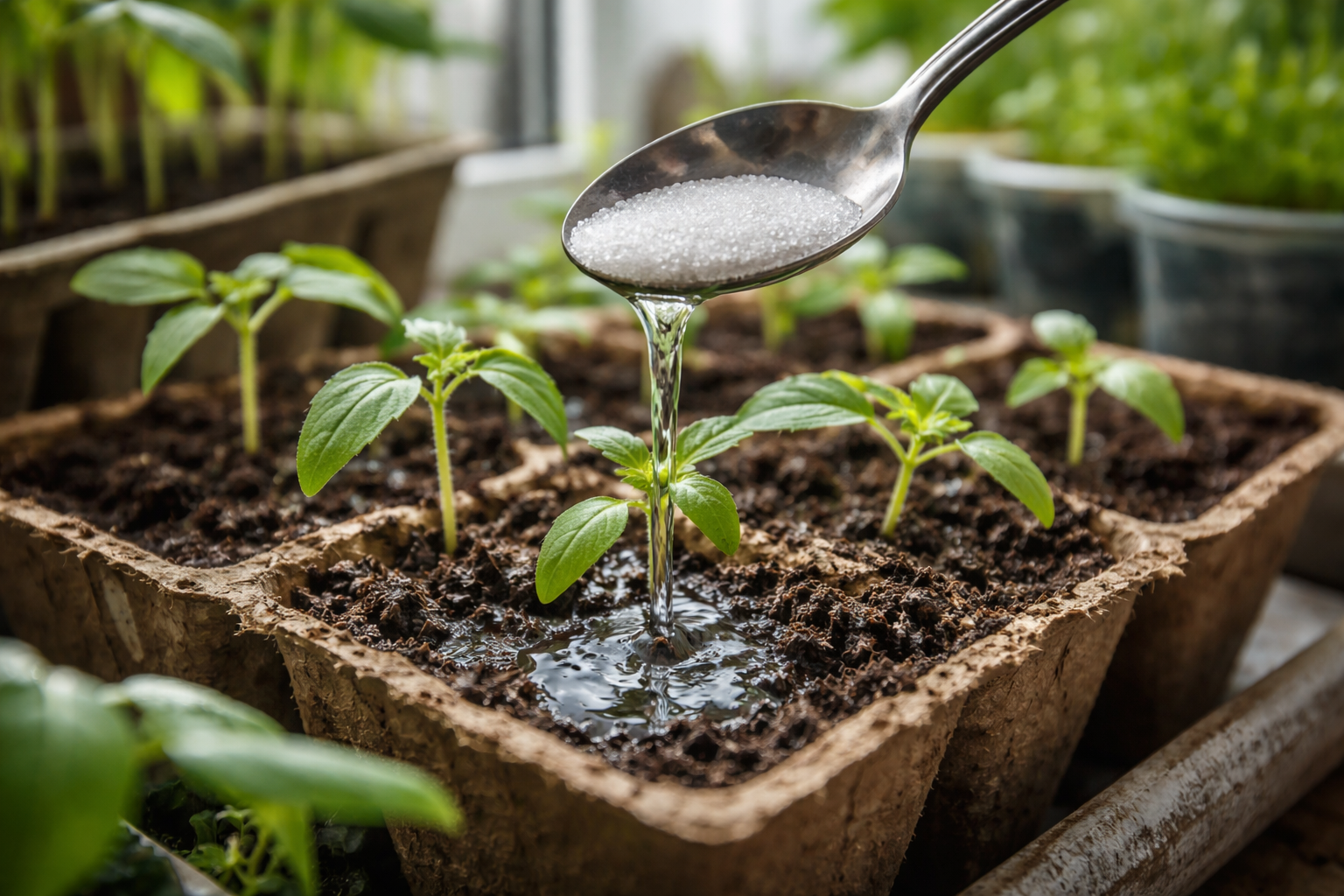 Katru pavasari daudzi dārznieki saskaras ar faktu, ka jaunie dzinumi izskatās vāji, aug lēni vai kļūst dzelteni uz palodzes. Es jums pastāstīšu, kā parastais cukurs no virtuves skapja palīdzēs ātri atjaunot augu vitalitāti un paātrināt to attīstību bez sarežģītas ķīmijas.