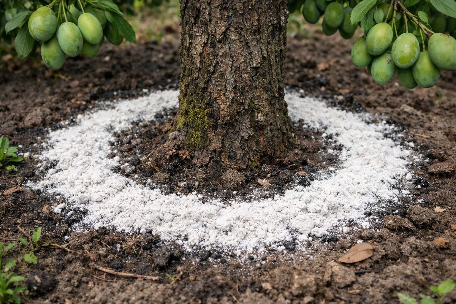 Stabilai plūmju olnīcu veidošanai vitāli svarīgs ir kalcijs un neitrāla zemes vide. Dolomīta milti uzreiz atrisina problēmu kompleksu pēc garās ziemas un kūstošā sniega. Atšķirībā no daudzām citām agresīvām piedevām, tas iedarbojas ārkārtīgi maigi un papildus bagātina augsni ar to, kas nepieciešams fotosintēzei. magnijs.