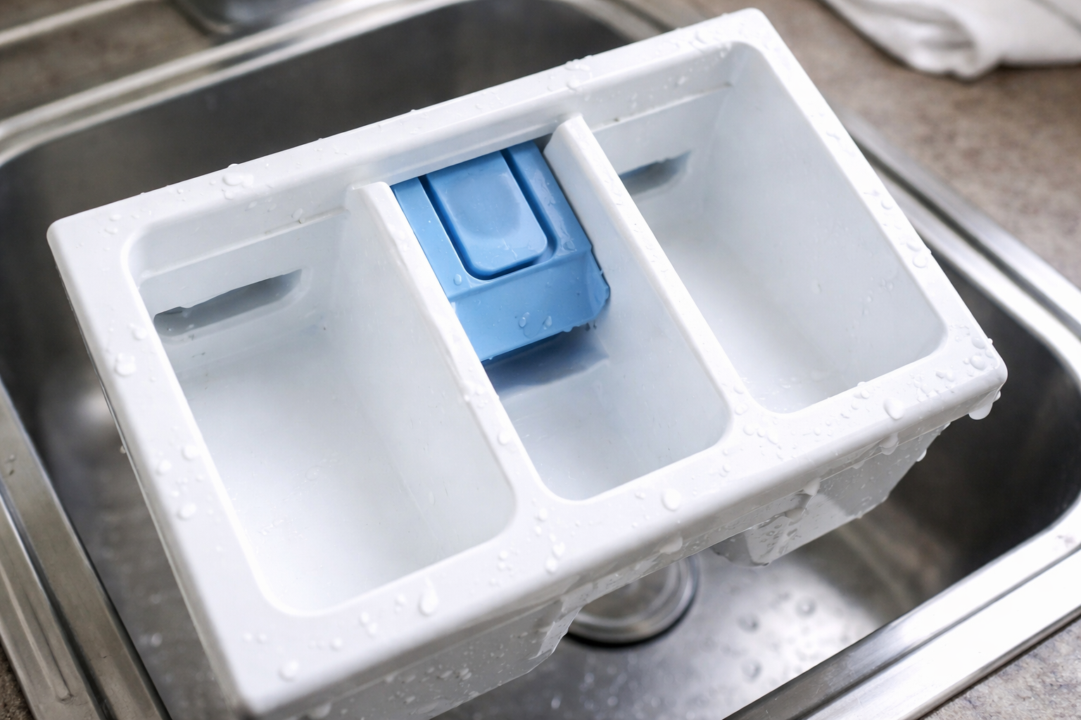 Šīs vienības tīrība tieši ietekmē lietu skalošanas kvalitāti. Kad veļas mīkstinātājs sajaucoties ar veco ķīmisko vielu paliekām, uz drēbēm var parādīties bālgani traipi, kurus ir grūti noņemt.