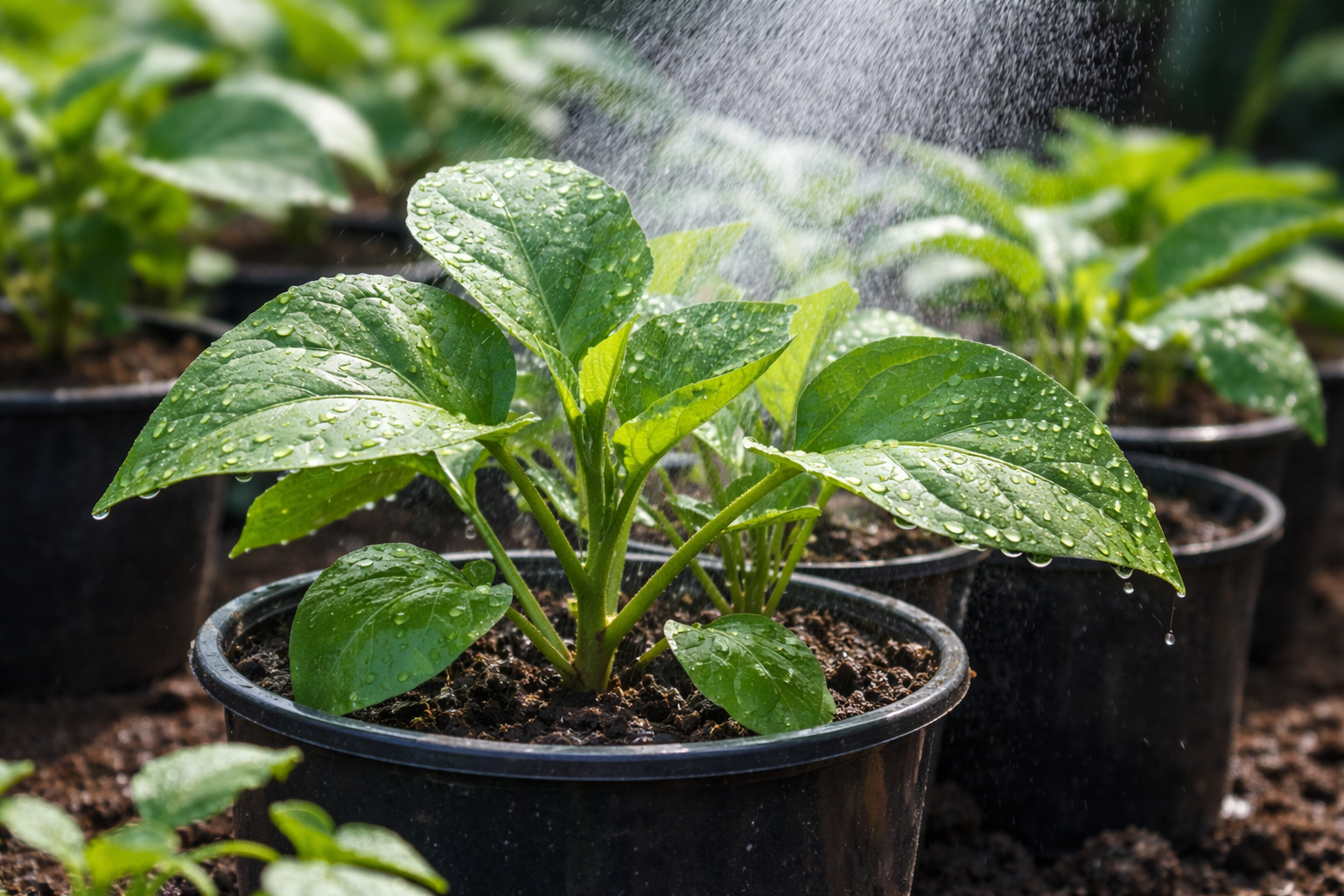 Vietējais mitruma pieaugums ievērojami samazina lapotnes slodzi, saskaroties ar tiešiem stariem, un novērš elastības zudumu.