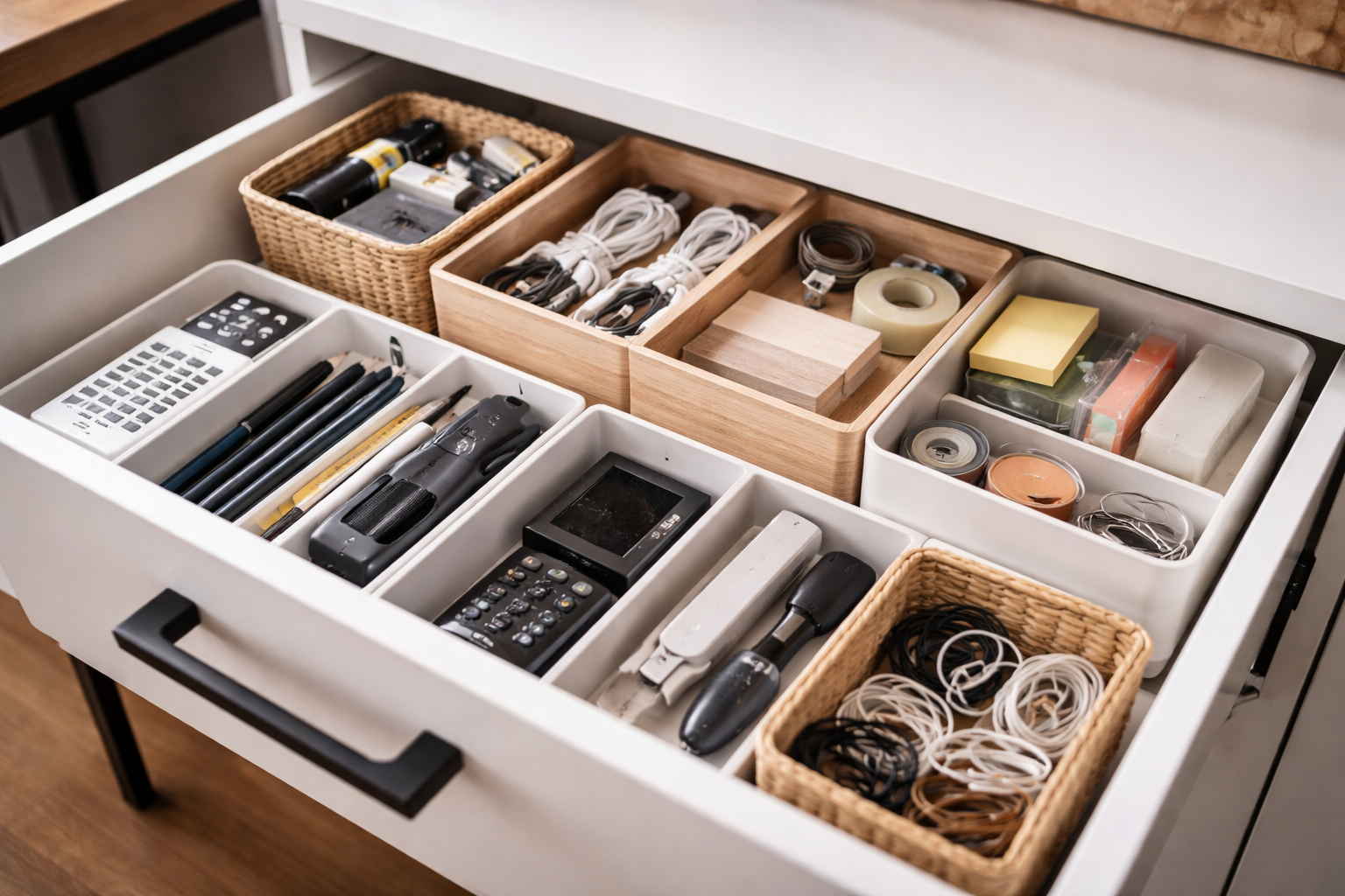 Sāciet ar vienu mazu atvilktni savā rakstāmgaldā un pakāpeniski izvērsiet to citās telpās.