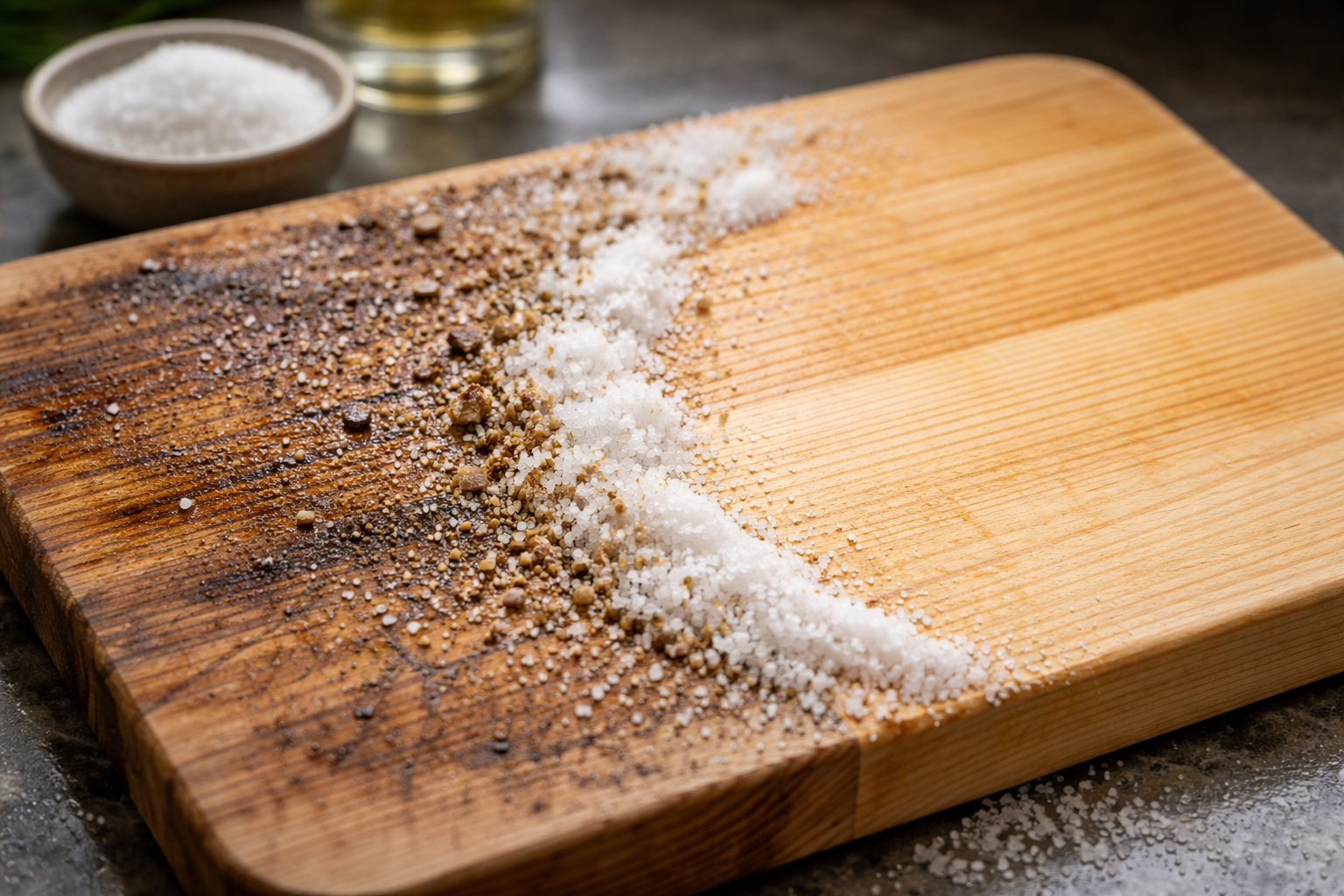 Koka griešanas dēļi absorbē smakas, pārklājas ar noturīgiem traipiem un kļūst par īstu baktēriju augšanas vietu, ja tos mazgā ar parasto trauku želeju. Daudzu gadu darba laikā esmu izmēģinājis daudzus produktus un atradis perfektu algoritmu, kas pāris minūšu laikā atgriezīs jūsu iecienītāko tāfeli perfektā tīrībā un svaigumā.