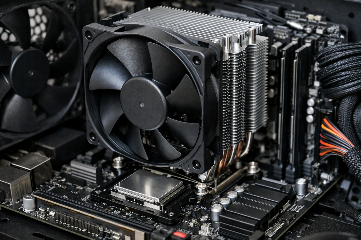 Slepenā nianse: nekad nepūtiet uz ventilatoriem, lai tie brīvi grieztos no spēcīgas gaisa plūsmas. Šī rotācija pārvērš dzesētāju par strāvas ģeneratoru, kas spēj izdegt plates savienotājus. Vienmēr rūpīgi nostipriniet asmeņus ar zobu bakstāmo vai turiet tos ar pirkstu.