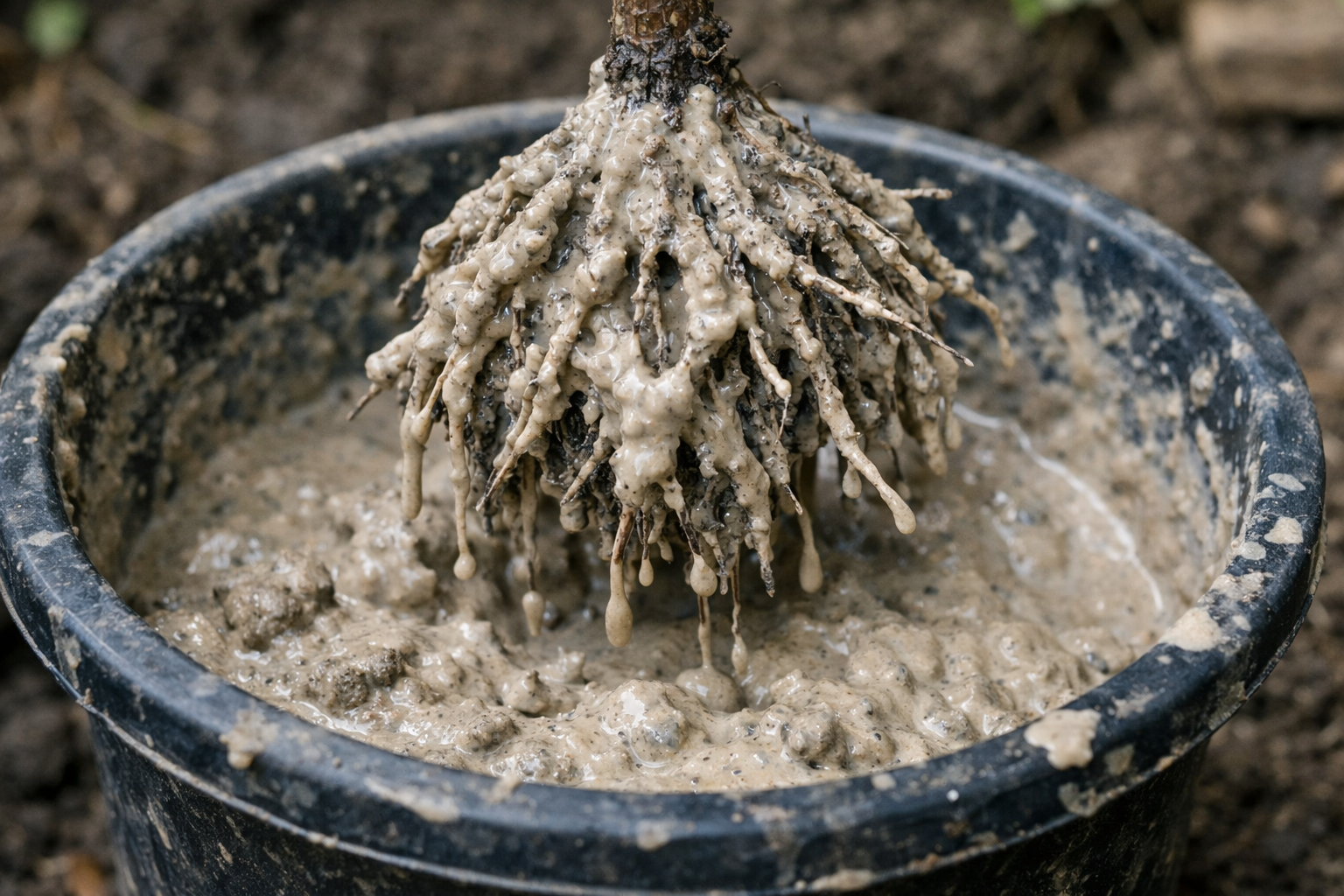 Izrokot stādāmo materiālu, mazās sūkšanas saknes uzreiz zaudē mitrumu. Brīvā dabā viņi var nomirt tikai dažu desmitu minūšu laikā. Tāpēc pieredzējuši dārznieki vienmēr izmanto mālu misukas pilda mākslīgā aizsargkokona funkciju.