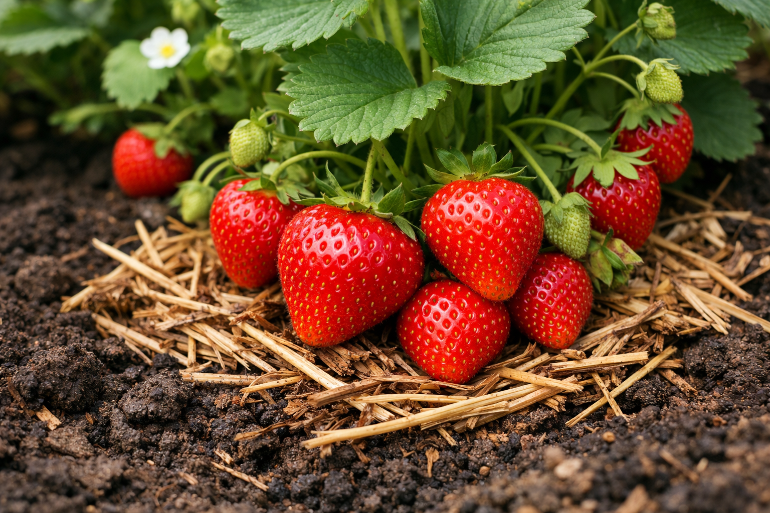 Regulāri tīri salmi lieliski aiztur ūdeni un aizsargā nogatavojušos augļus no saskares ar mitru augsni.