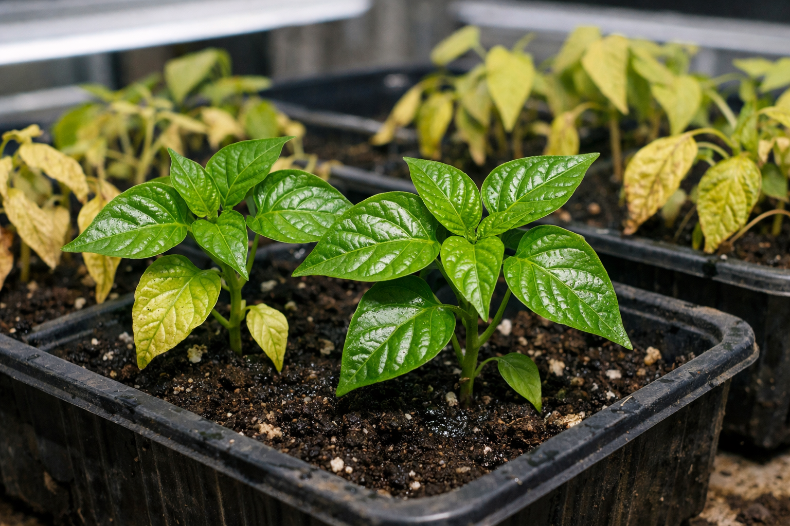Pirmais bālu stādu reanimācijas noteikums ir mikroklimata stabilizēšana. Daudzi dārznieki pieļauj kļūdu, mēģinot dzeltējošus piparus “pabarot” ar slāpekļa mēslojumu. Bez gaismas sakņu sistēma vienkārši nespēj absorbēt šos elementus, kas izraisa augsnes sāļošanos.