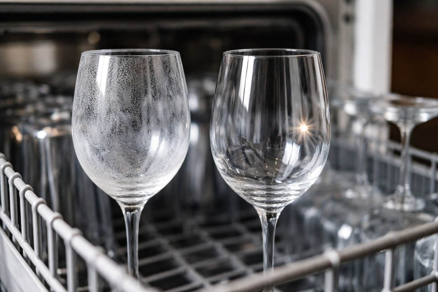 Daudzi vaino sliktas kvalitātes mazgāšanas želeju vai tabletes, taču patiesais iemesls ir pavisam cits. Galvenais ideāla spīduma ienaidnieks ir ciets ūdens. Tas satur milzīgu daudzumu kalcija un magnija sāļu. Kad mitrums iztvaiko no glāžu un šķīvju virsmas, derīgo izrakteņu atradnes nekur nepazūd, bet cieši nožūst līdz stiklam, veidojot blīvu kaļķakmens.