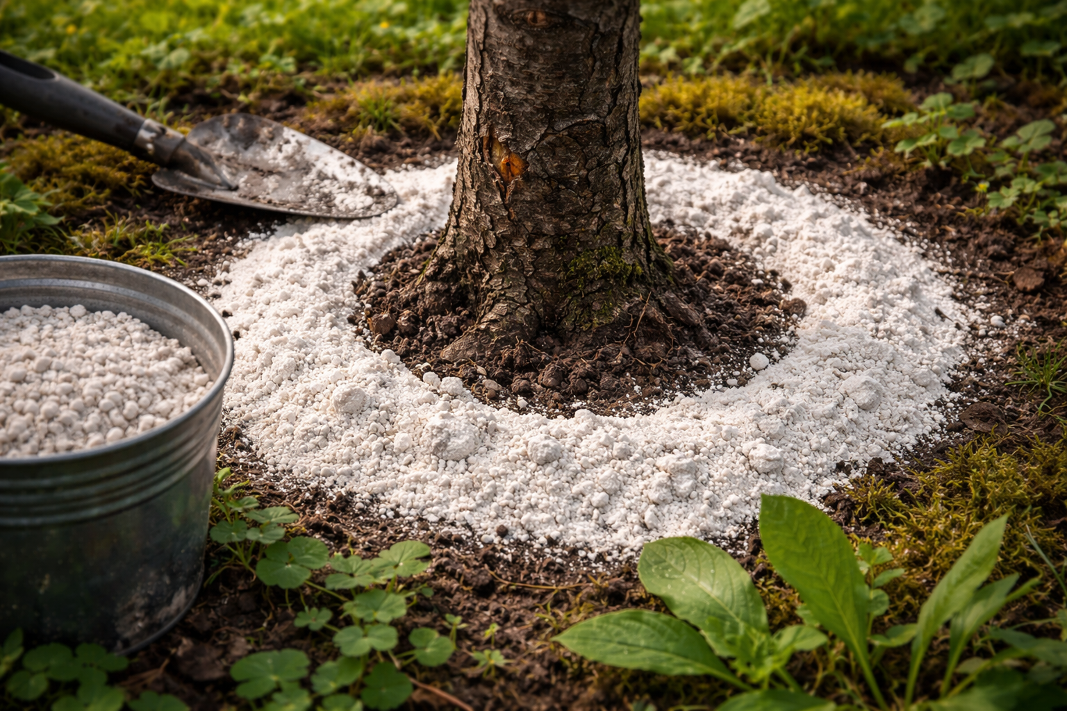 Agresīvā kaļķa tieša saskare ar sakņu sistēmu izraisa smagus ķīmiskus apdegumus un neizbēgamu stāda nāvi.