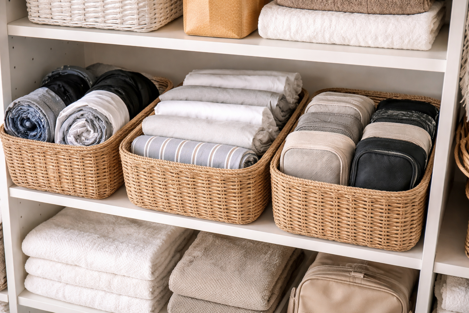 Vislabāk ir sākt ar gultas veļu, jo tā ir lielākā un problemātiskākā vieta skapī.