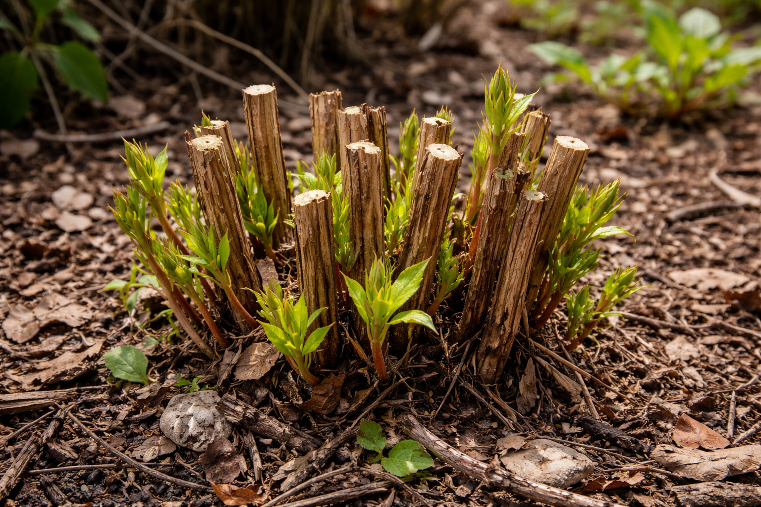 • Izvēlieties tikai asa griezēja lai izveidotu perfekti vienmērīgu griezumu bez krokām vai plaisām. • Atkāpieties burtiski pāris centimetrus no dzīvā pumpura, lai nepaliktu gari sausi celmi. • Noņemiet visus sapinušos un bojātos zarus līdz pat saknei. • Noteikti veiciet procedūru pirms sulas tecēšanas sākuma, kad augšanas stimulēšana visefektīvākais.