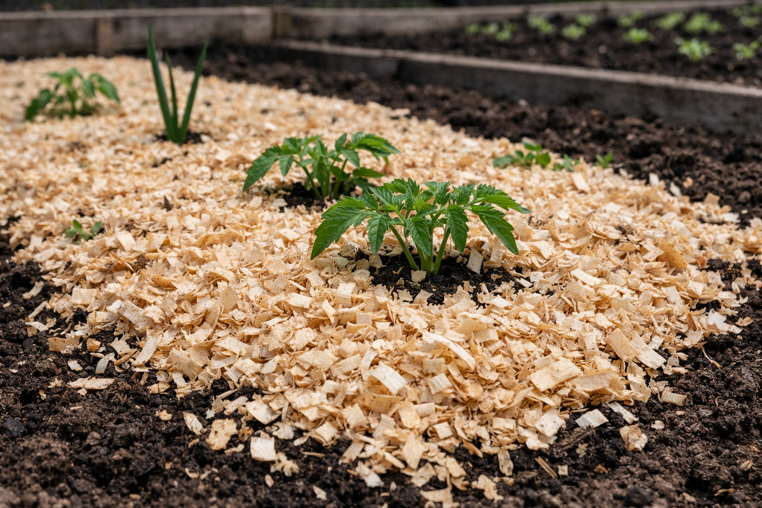 Pareiza koksnes atlikumu izmantošana objektā ievērojami ietaupa laiku, kas nepieciešams laistīšanai un ravēšanai visas sezonas garumā. Šis pieejamais materiāls pārvērš smagu darbu priekā un palīdz uzturēt optimālu mikroklimatu saknēm. Augi saņem drošu aizsardzību, un laika gaitā augsne tiek bagātināta ar vērtīgām organiskām vielām.
