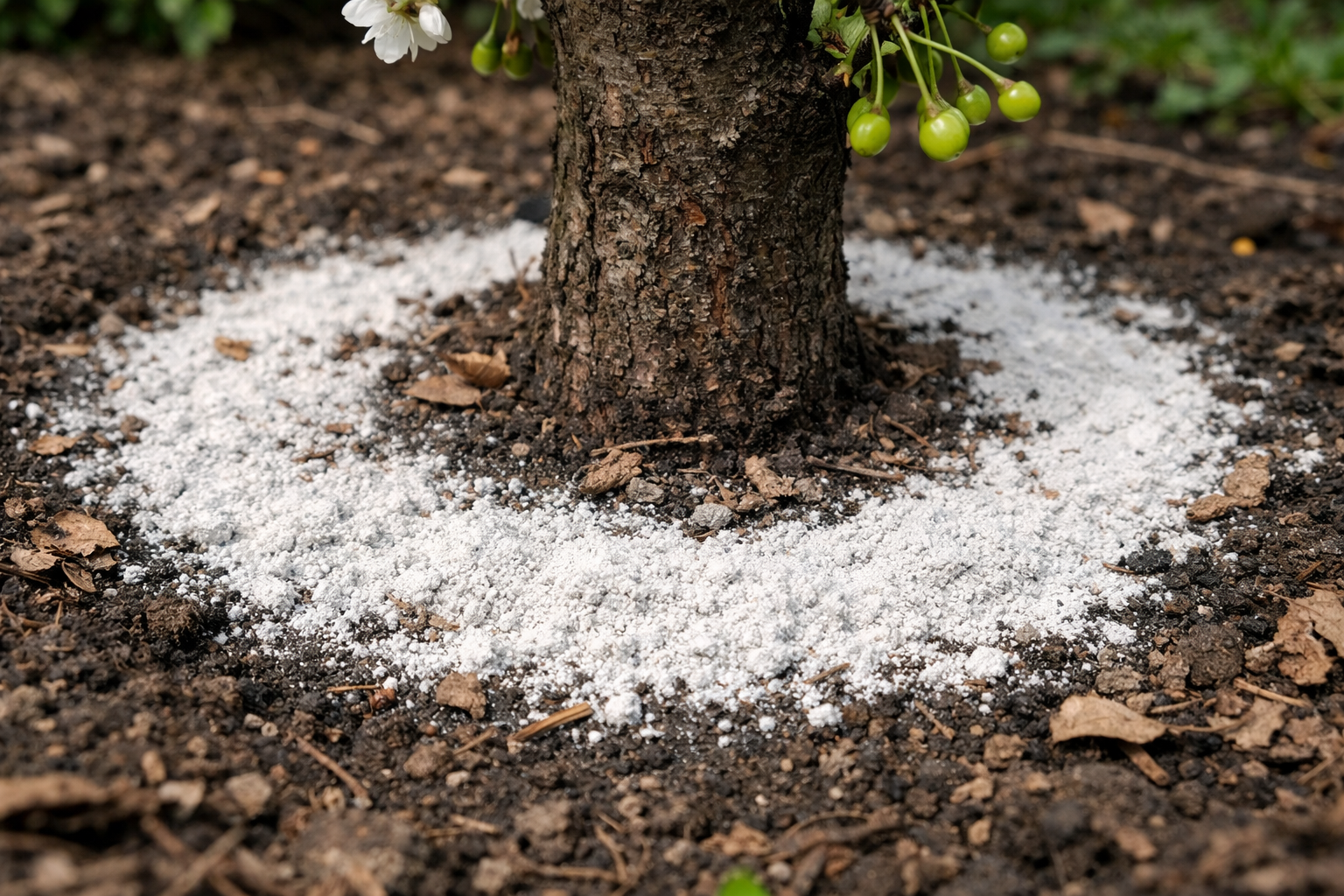 Ķirsis ir ārkārtīgi jutīgs pret augsnes skābuma līmenis. Skābā vidē koku saknes pārstāj absorbēt kalcijs Un fosforskas ir ļoti nepieciešami spēcīgas sēklas veidošanai un augļa mīkstuma pildīšanai. Dolomīta milti darbojas kā mīksts dabisks deoksidētājs, kas smalki maina zemes struktūru un nededzina sakņu sistēmu.