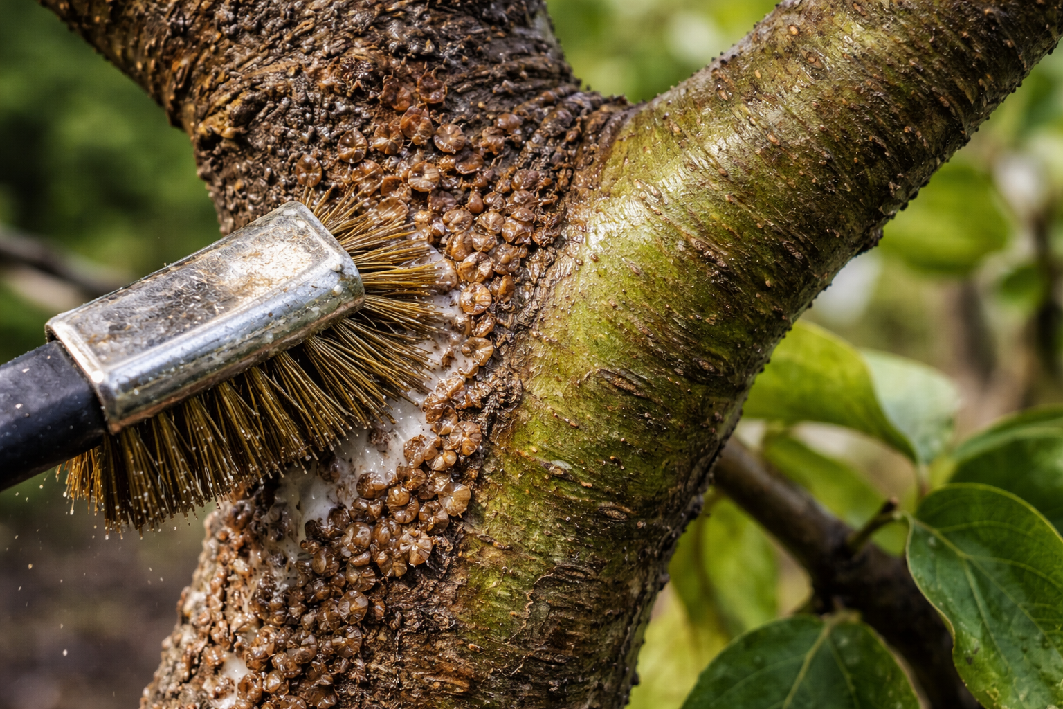 Izmantojiet stingru otu vai audeklu, lai vispirms noņemtu redzamās kolonijas no stumbriem.