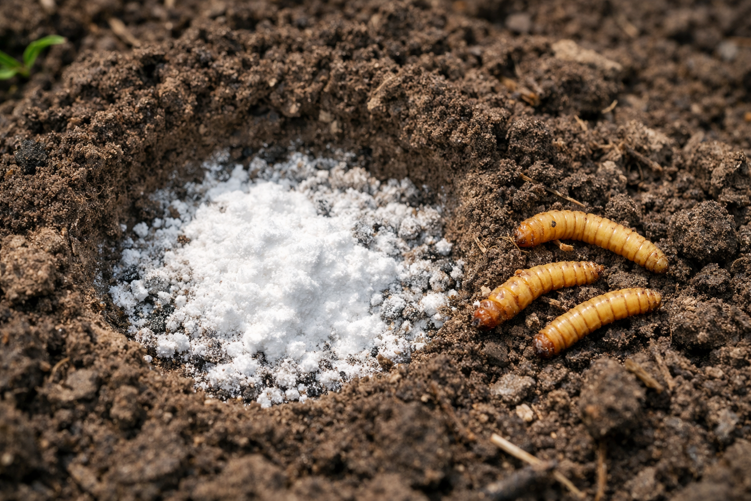 Stiepļu tārps vispār nepanes sārmainu vidi, tāpēc cepamā soda kļūst par ideālu ieroci pret viņu. Šis dabīgais deoksidētājs ne tikai aizdzen izturīgos dzeltenos kāpurus no saknēm, bet arī maigi uzlabo kopējo augsnes struktūru apgabalā.