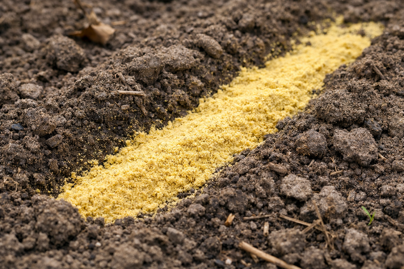 Stādīšanas laikā sinepju pulveri ielej tieši bedrēs.