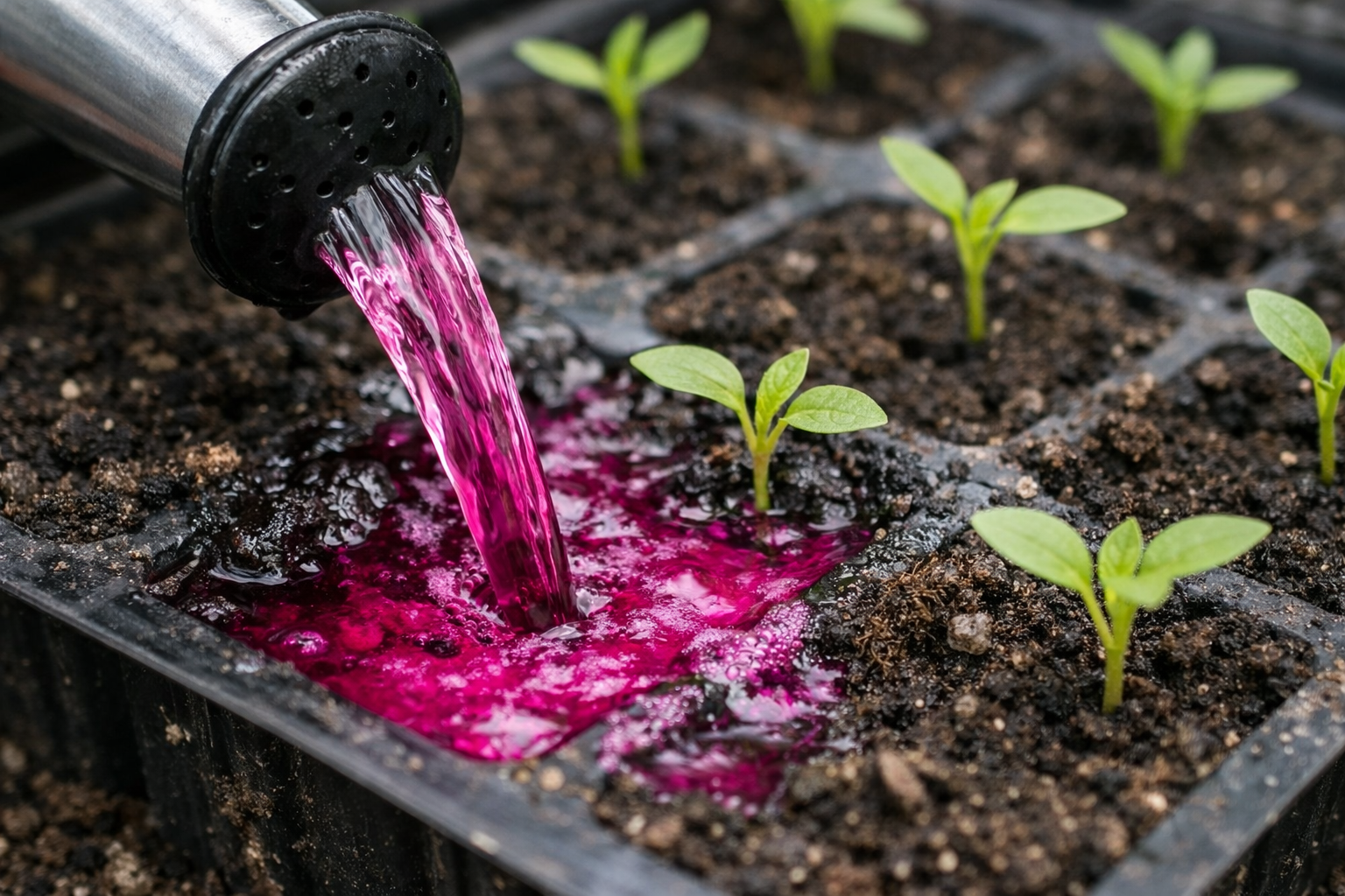 Pavasara stādīšanu bieži sabojā melnā kāja un vājas augu sakņu sistēmas vēsās augsnes dēļ. Pareiza laistīšana ar kālija permanganāta šķīdumu, kas nodrošinās stādiem drošu aizsardzību un nepieciešamos mikroelementus, palīdzēs atrisināt šo problēmu un ātri dezinficēt augsni bez agresīvām ķīmiskām vielām.