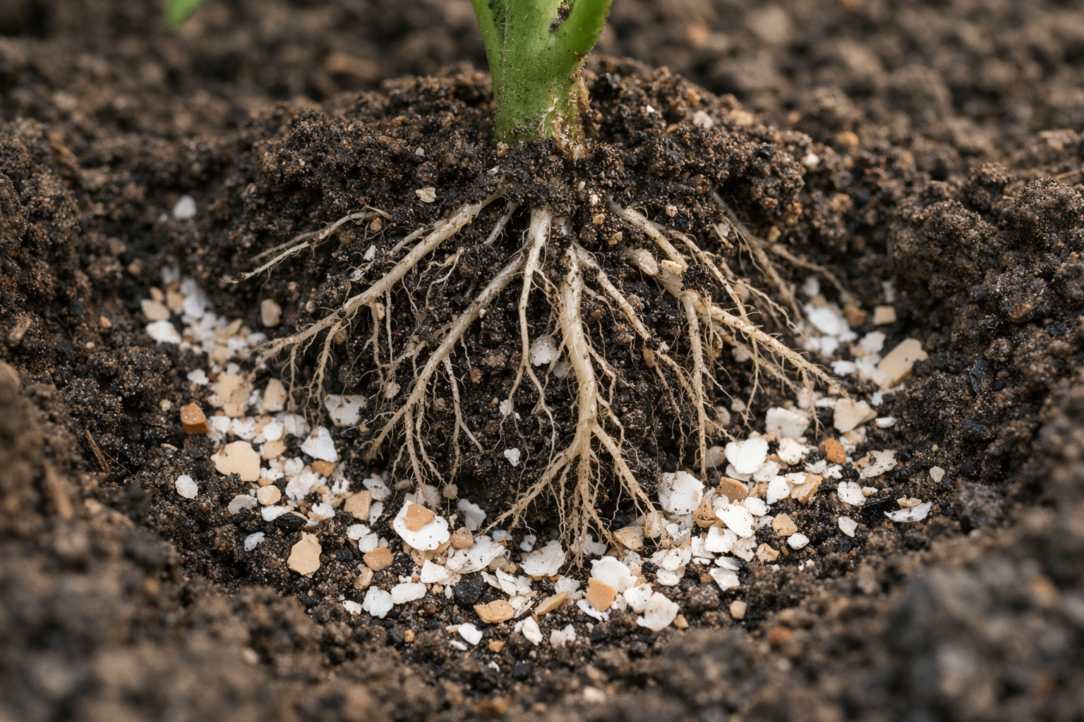 Slepenā nianse: lai augsnes baktērijas maksimāli absorbētu minerālvielas, iegūtajam pulverim pievienojiet nedaudz komposta vai humusa tieši pirms tā pievienošanas bedrē.